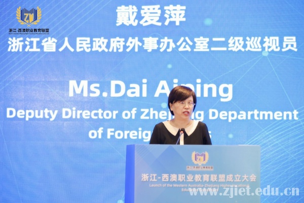 戴爱萍在致辞中指出,今年是浙江省与西澳州结好35周年,浙江-西澳职业教育联盟的成立是中澳教育领域合作的一项新进展,也是浙江省与西澳州友好务实合作的又一新成就。她表示,省外办将继续为深化两省州各领域交流合作提供支持,不断深化友城交流,推动教育领域合作不断迈向新台阶。
