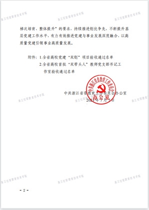 近日,浙江省教育厅公布了第二批全省高校党建工作标杆院系、样板支部培育创建单位验收通过名单,我校信息技术学院党总支、应用工程学院食品营养与检测教研室党支部顺利通过验收。