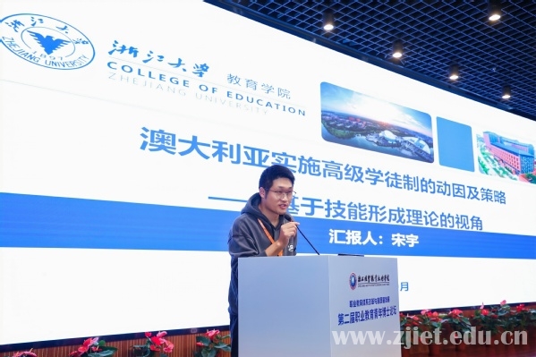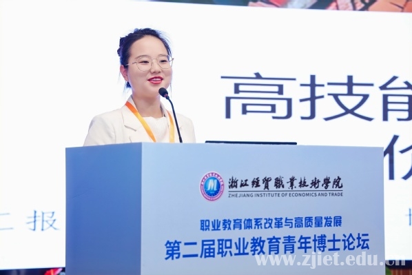 在下午的青年博士专题报告环节,华东师范大学博士徐峰、浙江大学博士后唐林伟、华东师范大学博士瞿连贵、浙江师范大学博士后冯旭芳、浙江大学博士生宋宇、浙江师范大学博士生王媛,先后作了《以技能强国志向来规划职业教育强国建设——从当下企业用工情况与未来劳动力市场看技能短缺》《AIGC时代高职“人工智能+”专业课程:逻辑理路与体系构建》《高等教育普及化进程中职业本科教育高质量发展的思考》《高职教育赋能非遗现代传承人才培养的理论逻辑与实践路径》《澳大利亚实施高级学徒制的动因及策略——基于技能形成理论的视角》《高技能拔尖创新人才培养的价值、难点和路径》的报告。各位参会代表的发言,深度剖析了我国高职教育的当前状况与未来发展趋势,为与会人员带来了深刻的思想启迪。