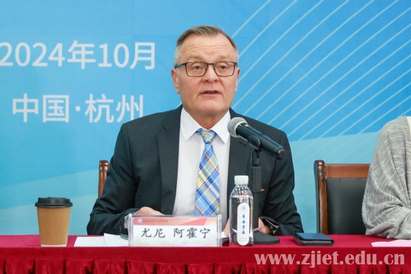 尤尼·阿霍宁代表芬方院校致辞。他对我校在联合学院建设过程中所付出的努力表示感谢。他表示,哈格哈里亚应用科学大学将继续为联合学院的学生提供优质教学资源,通过优化英文课程、监督教育质量、提供在线学习资源和学历提升平台等方式着力提升联合学院学生的学习体验,共同培养具有国际视野和专业技能的优秀人才。他期待双方能够携手共进,推动联合学院的合作层次和合作规模不断发展壮大。