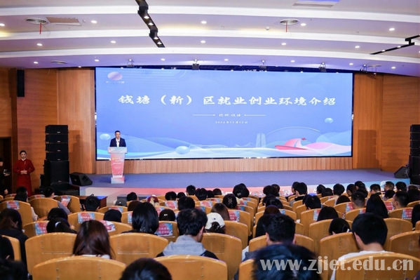 11月12日下午,由杭州钱塘新区管理委员会、杭州市钱塘区人民政府主办的2024年“春雨相伴 走近钱塘”大学生第一课活动在我校举行。新区管委会副主任、区政府党组成员胡潜,区委组织部副部长、区编办主任、人社局党委书记、局长汪新君,学校党委委员、副校长林锋出席,区相关部门负责人、区内14所高校师生代表及部分企业代表参加活动。
