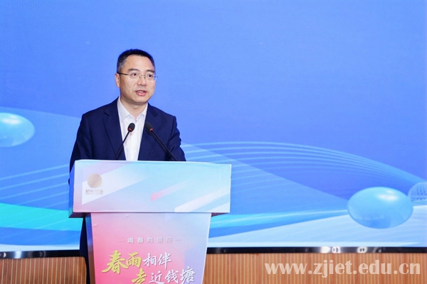 林锋对钱塘区把本次活动放在我校承办表示衷心感谢,并向与会嘉宾及同学们介绍了学校的办学特色、就业育人模式及成效。他指出,钱塘区是一片干事创业的热土,学校将继续深化区校合作,以更加创新的思维和务实的举措,共谱校地融合发展新篇章。
