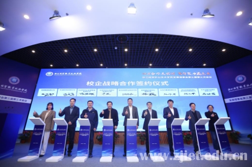 会上,学校与杭州市综合保税区管理办公室、杭州市农业发展集团有限公司、长生鸟集团有限公司、中油联控股有限公司、浙江大学城乡规划设计研究院有限公司、杭州和利时自动化有限公司、杭州米果控股集团有限公司、商源集团有限公司等8家单位签订了战略合作协议。
